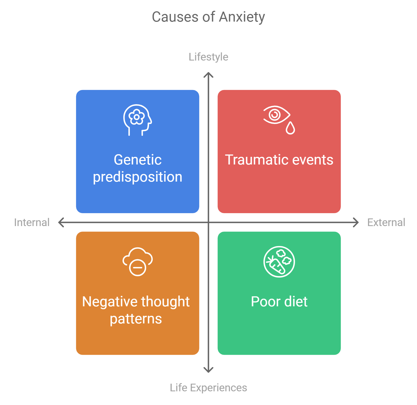 Anxiety is a complex emotion with multifaceted origins, influenced by a combination of factors:
